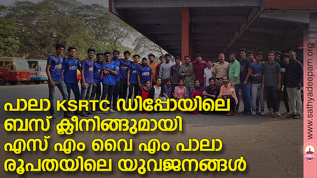 എസ് എം വൈ എം പാലാ രൂപതയുടെയും എസ് എം വൈ എം രാമപുരം ഫൊറോനയുടെയും രാമപുരം യൂണിറ്റിന്റെയും കാട്ടാമ്പാക്ക് യൂണിറ്റിന്റെയും സംയുക്ത ആഭിമുഖ്യത്തില് പാലാ KSRTC ഡിപ്പോയിലെ ബസ്സുകള് കഴുകി വൃത്തിയാക്കി.ഉച്ചകഴിഞ്ഞ് 2 മണി മുതല് 4.30 വരെയുള്ള സമയത്ത് 10 ബസ്സുകള് അമ്പതോളം വരുന്ന പാലാ രൂപതയിലെ യുവജനങ്ങള് കഴുകി വൃത്തിയാക്കി. പാലാ രൂപത ഡയറക്ടര് ഫാ.മാണി കൊഴുപ്പന്കുറ്റി,പാലാ രൂപത പ്രസിഡന്റ് തോമസ് ഇടാട്ടുകുന്നേല്, രൂപത ജനറല് സെക്രട്ടറി ടോണി കവിയില്, രൂപത വൈസ് പ്രസിഡന്റ് സെഞ്ചു ജേക്കബ്, രൂപത ജോയിന് ഡയറക്ടര് സി. നവീന സിഎംസി,സെക്രട്ടറി ആല്ഫി ഫ്രാന്സിസ്,ജോയിന്റ് സെക്രട്ടറി മെര്ലിന് സാബു,ട്രഷറര് എബി നെയ്ജില്, സ്റ്റേറ്റ് കൗണ്സിലര് ജിയോ റോയ്, സിന്ഡിക്കേറ്റ് കൗണ്സിലേസ് അഭിജിത്ത് സാബു, നീതു ടോമി, രാമപുരം ഫൊറോന പ്രസിഡന്റ് ഐവിന്, രാമപുരം A യൂണിറ്റ് പ്രസിഡന്റ് ആല്ബിന്,B യൂണിറ്റ് പ്രസിഡന്റ് നന്ദന,കാട്ടാമ്പാക്ക് യൂണിറ്റ് ജനറല് സെക്രട്ടറി ജോര്ജ് എന്നിവര് സന്നിഹിതരായിരുന്നു.
