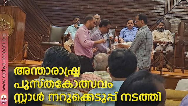 തിരുവനന്തപുരം നിയമസഭാ സമുച്ചയത്തില് നവംബര് ഒന്നു മുതല് 7 വരെ കേരള നിയമസഭ സംഘടിപ്പിക്കുന്ന അന്താരാഷ്ട്ര പുസ്തകോത്സവത്തിന്റെ സ്റ്റാള് നറുക്കെടുപ്പ് നിയമസഭ ബാങ്ക്വറ്റ് ഹാളില് നടന്ന സമ്മേളത്തില് ദേശീയ പുരസ്കാര ജേതാവായ എഴുത്തുകാരന് ഡോ. സെബിന് എസ് കൊട്ടാരം നിര്വഹിക്കുന്നു. നിയമസഭാ സെക്രട്ടറി എ.എം. ബഷീര്, അഡീഷണല് സെക്രട്ടറി ഡി. ഡി. ഗോഡ് ഫ്രീ, സ്പെഷ്യല് സെക്രട്ടറി ഷാജി സി ബേബി, ജോയിന്റ് സെക്രട്ടറി ആര് എസ് സന്തോഷ് കുമാര് ഉള്പ്പെടെയുള്ളവര് വേദിയില്. അന്താരാഷ്ട്ര പുസ്തകോത്സവം മുഖ്യമന്ത്രി ശ്രീ. പിണറായി വിജയന് ഉദ്ഘാടനം ചെയ്തു. പ്രശസ്ത എഴുത്തുകാരന് എം ടി വാസുദേവന് നായരെ ചടങ്ങില് ആദരിച്ചു.