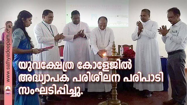 മുണ്ടൂർ: യുവക്ഷേത്ര കോളേജിലെ ഐ.ക്യൂ.എ.സി യുടെ നേതൃത്വത്തിൽ നടത്തിയ ഏകദിന അദ്ധ്യാപക പരിശീലന പരിപാടിയായ "ഷാർപ്പണിങ്ങ് ദ സോ" പാലക്കാട് രൂപത സഹായ മെത്രാൻ മാർ പീറ്റർ കൊച്ചുപുരക്കൽ ഉദ്ഘാടനം ചെയ്തു. ഡൽഹി ജെ എൻ യുവിലെ മുൻ പ്രൊഫ റവ.ഡോ. പയസ് മാലേകണ്ടത്തിലിൻ്റെ നേതൃത്വത്തിലാണ് പരിശീലന പരിപാടി നടത്തിയത്. പ്രിൻസിപ്പാൾ അഡ്വ. ഡോ.ടോമി ആൻറണി അദ്ധ്യക്ഷനായിരുന്നു. ഡയറക്ട്ടർ റവ.ഡോ. മാത്യൂ ജോർജ്ജ്വാഴയിൽ സ്വാഗതവും പി.ജി ഇംഗ്ലീഷ് വിഭാഗം കോഡിനേറ്റർ Ms. പമീല ജോൺസൻ നന്ദിയും പറഞ്ഞു.