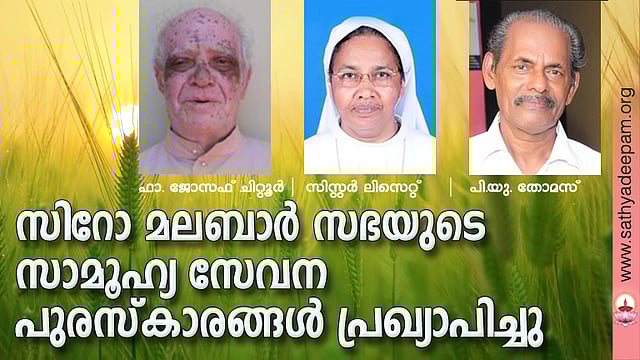 കാക്കനാട്: സിറോമലബാര് സഭയുടെ സാമൂഹ്യ സേവന പുരസ്കാരങ്ങള് പ്രഖ്യാപിച്ചു. സിറോമലബാര് സോഷ്യല് ഡവലപ്മെന്റ് നെറ്റ്വര്ക്ക് (സ്പന്ദന്) ഏര്പ്പെടുത്തിയ പുരസ്കാരത്തിന് രൂപതാ വൈദികരുടെ വിഭാഗത്തില് ഫാ. ജോസഫ് ചിറ്റൂര് (മാനന്തവാടി രൂപത), സന്യസ്തരുടെ വിഭാഗത്തില് സിസ്റ്റര് ലിസെറ്റ് ഡി.ബി.എസ്. (ജഗ്ദല്പൂര് രൂപത), അത്മായ വിഭാഗത്തില് പി.യു. തോമസ്, നവജീവന് ട്രസ്റ്റ്, കോട്ടയം (ചങ്ങനാശ്ശേരി അതിരൂപത) എന്നിവര് അര്ഹരായി. അരലക്ഷം രൂപയും ഫലകവുമടങ്ങുന്നതാണ് പുരസ്കാരം. സിറോമലബാര് സിനഡിനോടനുബന്ധിച്ച് കാക്കനാട് മൗണ്ട് സെന്റ് തോമസില് 24നു നടക്കുന്ന ചടങ്ങില് വച്ച് മേജര് ആര്ച്ച്ബിഷപ് കര്ദിനാള് മാര് ജോര്ജ് ആലഞ്ചേരി അവാര്ഡ് സമര്പ്പിക്കും; സ്പന്ദന് ചെയര്മാന് മാര് പോളി കണ്ണൂക്കാടന് അദ്ധ്യക്ഷത വഹിക്കും; സ്പന്ദന് ചീഫ് കോര്ഡിനേറ്റര് ഫാ. ജേക്കബ് മാവുങ്കല് ചടങ്ങില് സ്വാഗതം ആശംസിക്കും.