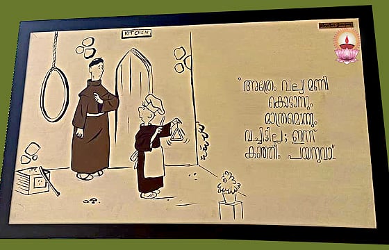 ആഹാരത്തിന്റെ വില സൂചിപ്പിക്കപ്പെട്ടിട്ടുണ്ട്. അതനുസരിച്ചോ അതില് കൂടുതലോ കുറവോ നിങ്ങളുടെ ഇഷ്ടം പോലെ, അവിടെ വച്ചിരിക്കുന്ന ബോക്സില് നിങ്ങള്ക്ക് നിക്ഷേപിക്കാം. ഇല്ലെങ്കിലും പ്രശ്നമില്ല. അതു ചോദിക്കാനും പറയാനും അവിടെ ആരുമില്ല. കാരണം, ഇതു റെസ്റ്റോറന്റല്ല. കച്ചവടസ്ഥാപനമല്ല, സഹോദരങ്ങളോടുള്ള സ്നേഹത്തിന്റെയും കരുതലിന്റെയും ഫലമായ, സന്യാസാശ്രമത്തിലെ ഒരു ഊട്ടുമുറി മാത്രം. ആശ്രമാംഗങ്ങളെ പോലെ ആര്ക്കും കയറി ചെല്ലാവുന്ന ഒരു ഊട്ടുമുറി.