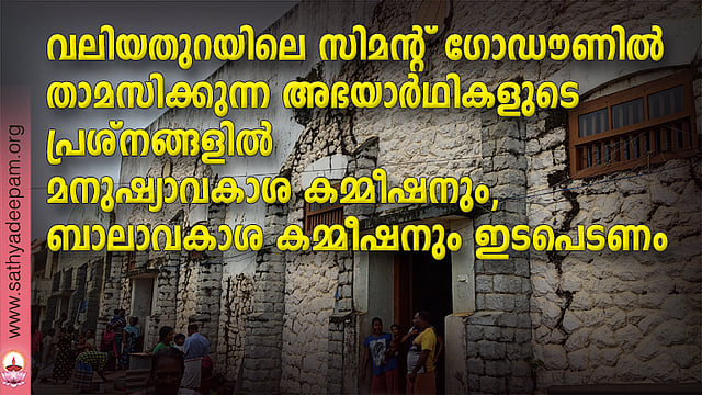 കൊച്ചി: തീരശോഷണം മൂലം ഭവനങ്ങൾ നഷ്ടപ്പെട്ടവർക്കുവേണ്ടിയുള്ള താൽക്കാലിക ക്യാമ്പാക്കി മാറ്റിയ വലിയതുറയിലെ നൂറ്റമ്പത് വർഷത്തിലേറെ പഴക്കമുള്ള സിമന്റ് ഗോഡൗണിൽ കഴിഞ്ഞ ഏതാനും വർഷങ്ങളായി താമസിക്കുന്ന നൂറുകണക്കിന് പേരുടെ അവസ്ഥ വളരെ ശോചനീയമാണ്. മാസങ്ങൾ മാത്രം പ്രായമുള്ള കുഞ്ഞുങ്ങൾ മുതൽ, പ്രായമായവരും രോഗികളും വരെ അനാരോഗ്യകരമായ സാഹചര്യത്തിൽ ജീവിക്കാൻ വിധിക്കപ്പെട്ടിരിക്കുന്ന അവസ്ഥയിൽ മനുഷ്യാവകാശ കമ്മീഷനും, ബാലാവകാശ കമ്മീഷനും അടിയന്തിരമായി ഇടപെടേണ്ടതാണ്. ഇവരുടെ പ്രശ്നങ്ങൾ കേൾക്കാനോ, പുനരധിവസിപ്പിക്കാനോ, നൽകിയ വാഗ്ദാനങ്ങൾ പാലിക്കാനോ ഇതുവരെ തയ്യാറായിട്ടില്ലാത്ത സർക്കാർ കടുത്ത മനുഷ്യാവകാശ ലംഘനവും അനീതിയുമാണ് പ്രവർത്തിച്ചുകൊണ്ടിരിക്കുന്നത്. ഈ സാഹചര്യത്തിൽ ഗത്യന്തരമില്ലാതെയാണ് തീരദേശവാസികൾ സമരത്തിന് ഇറങ്ങിയിരിക്കുന്നത്. അവർ അഭിമുഖീകരിക്കുന്ന പ്രതിസന്ധികൾ പരിഹരിക്കപ്പെടുക തന്നെ വേണം. എത്രയും വേഗം പ്രശ്നങ്ങൾ പരിഹരിക്കപ്പെടുന്നതിന് സർക്കാർ മുൻകയ്യെടുത്ത് പ്രവർത്തിക്കുകയും, ബന്ധപ്പെട്ട കമ്മീഷനുകൾ അടിയന്തിരമായി പ്രസ്തുത ക്യാമ്പ് സന്ദർശിക്കുകയും, ആവശ്യമായ നടപടികൾ സ്വീകരിക്കുകയും വേണം. വലിയതുറയിലെ അഭയാർത്ഥി ക്യാമ്പും വിഴിഞ്ഞം തുറമുഖ നിർമ്മാണത്തോട് അനുബന്ധിച്ചുള്ള അതിജീവന സമര വേദിയും അനുബന്ധ പ്രദേശങ്ങളും കെസിബിസി ഡെപ്യൂട്ടി സെക്രട്ടറി ജനറൽ ഫാ. ജേക്കബ് പാലയ്ക്കാപ്പിള്ളി, കെസിബിസി ഫാമിലി കമ്മീഷൻ സെക്രട്ടറി ഫാ. ക്ളീറ്റസ് കതിർപ്പറമ്പിൽ, യൂത്ത് കമ്മീഷൻ സെക്രട്ടറി ഫാ. സ്റ്റീഫൻ തോമസ് ചാലക്കര, ജാഗ്രതാ കമ്മീഷൻ സെക്രട്ടറി ഫാ. മൈക്കിൾ പുളിക്കൽ എന്നിവർ സന്ദർശിക്കുകയും സമരത്തിന് ഐക്യദാർഢ്യം അറിയിക്കുകയും ചെയ്തു.