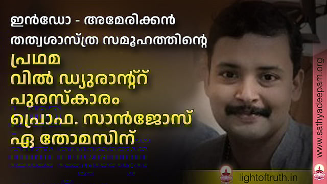 ഇൻഡോ - അമേരിക്കൻ തത്വശാസ്ത്ര സമൂഹത്തിന്റെ പ്രഥമ വിൽ ഡ്യുരാന്റ്റ് പുരസ്കാരം പ്രൊഫ. സാൻജോസ് ഏ തോമസിന് ലഭിച്ചു. തേവര കോളേജിലെ സോഷ്യോയോളജി വിഭാഗം മേധാവിയാണ്.