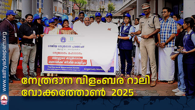 അങ്കമാലി : ദേശീയ നേത്രദാന പക്ഷാചരണത്തോടനുബന്ധിച്ച് കേരള നേത്രബാങ്ക് അസ്സോസിയേഷനും അങ്കമാലി നഗരസഭയും സഹകരിച്ചുകൊണ്ട് പൊതുസമ്മേളനവും നേത്രദാന വിളംബര റാലി - വോക്കത്തോണ് - 2025 പൊതജനപങ്കാളിത്വത്തോടെ സംഘടിപ്പിച്ചു. പൊതുസമ്മേളനം അങ്കമാലി മുനിസപ്പല് ചെയര്മാന് അഡ്വ. ഷിയോപോൾ ഉദ്ഘാടനം ചെയ്തു.