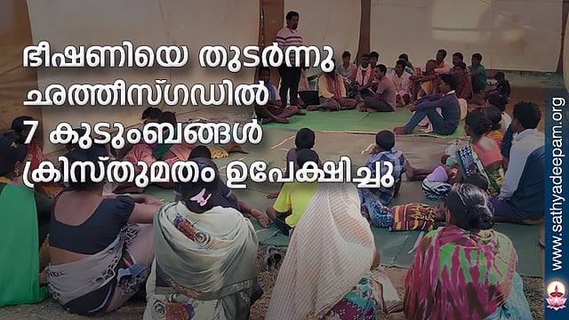 ഛത്തീസ്ഗഡിലെ ഒരു ആദിവാസിഗ്രാമത്തിലെ 13 കുടുംബ ങ്ങളോട് ക്രൈസ്തവവിശ്വാസം ഉപേക്ഷിക്കണമെന്നു ഗ്രാമക്കൂട്ടാ യ്മ വിധിച്ചു. ഇല്ലെങ്കില് ഈ കുടുംബങ്ങളെ ഗ്രാമത്തില് നിന്നു പുറത്താക്കുമെന്ന ഭീഷണിയും ഓശാന ഞായറാഴ്ച നല്കി.