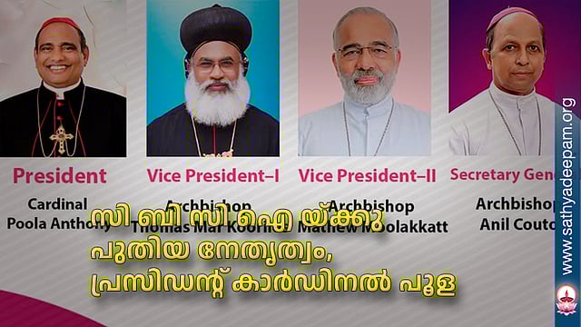 ഭാരത കത്തോലിക്കാ മെത്രാന് സംഘത്തിന്റെ പുതിയ നേതൃത്വം ബംഗളൂരുവില് നടന്ന 37-ാമതു സമ്മേളനത്തില് ആന്ധ്രായിലെ ഹൈദരാബാദ് അതിരൂപതാധ്യക്ഷനായ കാര്ഡിനല് ആന്റണി പൂള സി ബി സി ഐ യുടെ പുതിയ പ്രസിഡന്റായി തിരഞ്ഞെടുക്കപ്പെട്ടു.