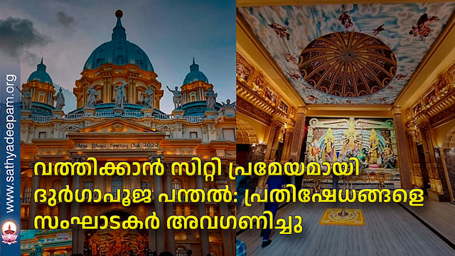 ദുര്ഗാപൂജയോടനുബന്ധിച്ച് റാഞ്ചിയിലുണ്ടാക്കിയ പന്തലിനു വത്തിക്കാന് സിറ്റി പ്രമേയമാക്കിയതില് വിശ്വഹിന്ദു പരിഷത്ത് പ്രതിഷേധവുമായി രംഗത്തെത്തി. സെന്റ് പീറ്റേഴ്സ് ബസിലിക്കയുടെയും വത്തിക്കാന് മ്യൂസിയത്തിന്റെയും മാതൃകയിലാണ് പന്തലൊരുക്കിയിരിക്കുന്നത്.