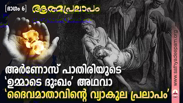 എന്നിങ്ങനെ ''സര്വലോകനാഥനായ നിന്റെ മരണം കണ്ടിട്ട് സര്വ്വ ദുഃഖങ്ങളുടേയും കടലില് ഞാനിതാ വീണിരിക്കുന്നു മകനേ! സര്വ്വ സന്താപങ്ങളെക്കുറിച്ച് എന്തുപറയുവാനാണ് ഞാന്? നിന്റെ മരണത്തോടുകൂടി ഞാനും മരിച്ചിരുന്നെങ്കിലെന്ന് ആഗ്രഹിച്ചുപോകുകയാണ്. നിന്റെ മനസ്സിന്റെ ഇഷ്ടമെല്ലാം പാലിക്കാനായി എന്റെ മനസ്സിനെ നീ ശക്തിപ്പെടുത്തണമേ മകനേ!'' എന്നൊക്കെ വിലപിക്കുന്ന ആ അമ്മയുടെ ഹൃദയം പിളര്ക്കുന്ന വിലാപം കണ്ടില്ലെന്നു നടിക്കുവാന് ആര്ക്കു കഴിയും?