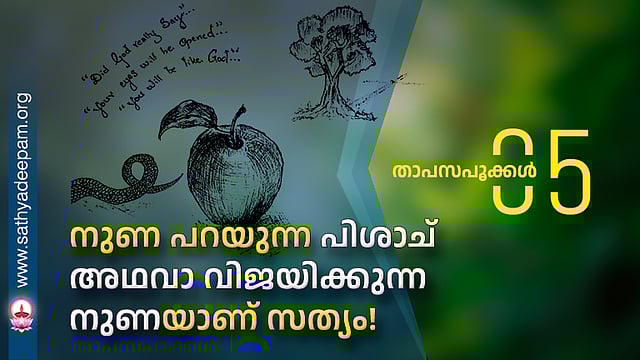 “അവൻ നുണയനും നുണയുടെ പിതാവുമാണ്” (യോഹന്നാൻ 8:44). പിശാചിനെക്കുറിച്ചുള്ള ദൈവത്തിന്റെ നിർവചനമാണിത്. തോട്ടത്തിന് നടുവിലെ പഴം തിന്നാൽ നിങ്ങളുടെ കണ്ണു തുറക്കുമെന്നും നിങ്ങൾ ദൈവത്തെപ്പോലെ ആകുമെന്നും പറഞ്ഞതാണ് ചെകുത്താന്റെ ആദ്യ നുണ. ഈ നുണ വിശ്വസിക്കാൻ എല്ലാ കാലത്തും കുറെ മനുഷ്യരുണ്ടെന്നതാണ് പിശാചിന്റെ വിജയം!