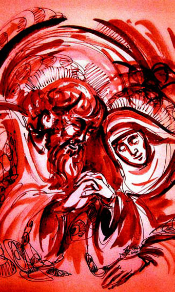 തന്റെ താപസവേദി വിടാതിരുന്ന ആ ഏകാകി മഠത്തിലേക്കു പുറപ്പെട്ടു. അദ്ദേഹം പ്രായവും പക്വതയും വിശുദ്ധിയും പ്രശസ്തിയുമുള്ളവനായതുകൊണ്ടു മഠക്കാര് സന്തോഷത്തോടെ സ്വീകരിച്ചു. എല്ലാവരും വന്നു. എല്ലാവരുമുണ്ടോ? "ആ വിഡ്ഢി വന്നിട്ടില്ല." "അവളെയും കൊണ്ടുവരിക."
