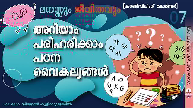 റോണ് പഠനകാര്യത്തില് ഒരുപാട് പുറകിലാണ്, അവന് മാര്ക്ക് തീരെ കുറവാണ്, അവന് എഴുതുമ്പോള് അക്ഷരങ്ങള് പലതും വിട്ടുപോകുന്നു. കണക്ക് അവന് വളരെ ബുദ്ധിമുട്ടാണ്. എന്നാല് മറ്റു കര്യങ്ങളില് കുട്ടി വളരെ സമര്ത്ഥനാണ്. സൈക്കോളജിസ്റ്റിനെ കാണിച്ചപ്പോള് അസ്സസ്സ്മെന്റിനുശേഷം പഠന വൈകല്യമാണെന്നറിയിച്ചു.