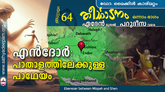 മന്ത്രവാദികളെയും മരിച്ചവരില്നിന്ന് രഹസ്യം ചോര്ത്താന് കഴിവുണ്ടെന്ന് കരുതിയിരുന്ന മൃതസന്ദേശവാഹകരെയും നാട്ടില് നിന്നു തുടച്ചു നീക്കിയ സാവൂള് ഇപ്പോള് അങ്ങനെ ഒരാളെ തേടുന്നു എന്നതുതന്നെ സംഭ്രാന്തമായ അയാളുടെ മാനസികാവസ്ഥയ്ക്കു തെളിവാണ്. ഇസ്രായേല് ദേശത്തുനിന്നു മന്ത്രവാദികളെ തുരത്തിയപ്പോള് കാനാന്കാരുടെ തുരുത്തില് അഭയം തേടിയതായിരുന്നു എന്ദോറിലെ മന്ത്രവാദിനി.