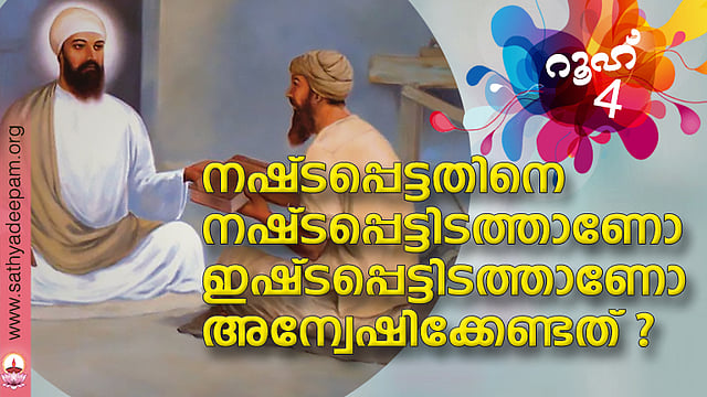 ബുദ്ധിമാനായ ഒരു സൂഫിഗുരു തന്റെ വീടിന്റെ ഉമ്മറത്ത് എന്തോ അന്വേഷിക്കുകയായിരുന്നു. ആ വഴി കടന്നുവന്ന ശിഷ്യന് ഗുരുവിനോടായി ചോദിച്ചു: ''എന്താണ് അങ്ങ് അന്വേഷിക്കുന്നത്?'' സൂഫിഗുരു പറഞ്ഞു, ''എന്റെ വിലപിടിപ്പുള്ള ഒരു സ്വര്ണ്ണ സൂചി നഷ്ടപ്പെട്ടു. അത് അന്വേഷിക്കുകയാണ്.'' ഇതുകേട്ട ശിഷ്യന് ആ സൂഫിഗുരുവിനോടു കൂടെ ചേര്ന്ന് നഷ്ടപ്പെട്ട സ്വര്ണ്ണ സൂചി അന്വേഷിക്കുവാന് തുടങ്ങി. സമയം ഏറെ കടന്നുപോയിട്ടും ആ സൂചി കണ്ടുകിട്ടിയില്ല. അന്വേഷിച്ചു മടുത്ത ശിഷ്യന് ഗുരുവിനോട് ആ സൂചിയെപ്പറ്റി ചോദിക്കുവാന് തുടങ്ങി. എങ്ങനെ, എവിടെ വച്ചാണ് ആ സൂചി നഷ്ടപ്പെട്ടതെന്ന് ശിഷ്യന് തിരക്കി. അപ്പോഴാണ് ഒരു കാര്യം വ്യക്തമായത് സൂചി നഷ്ടമായത് ഉമ്മറത്തല്ല; മറിച്ച് വീടിനകത്താണ്. ഇതു മനസ്സിലാക്കിയ ശിഷ്യന് ചോദിച്ചു: 'പിന്നെ എന്താണ് അങ്ങ് ഈ ഉമ്മറത്തുവന്ന് അന്വേഷിക്കുന്നത്, വീടിനകത്തല്ലെ അന്വേഷിക്കേണ്ടത്?' സൂഫി ഗുരു പുഞ്ചരിച്ചുകൊണ്ട് ശിഷ്യനോടു പറഞ്ഞു, 'സൂചി നഷ്ടപ്പെട്ടത് വീടിനകത്താണെങ്കിലും വെള്ളിച്ചമുള്ളത് ഈ ഉമ്മറത്തായതുകൊണ്ടാണ് ഞാന് നഷ്ടപ്പെട്ടത് ഇവിടെ അന്വേഷിച്ചത്. വീടിനകത്ത് വെളിച്ചമില്ലല്ലോ?' ഈ ഉത്തരം കേട്ടു നിശ്ചലനായ ശിഷ്യന്റെ തോളില് തട്ടി ചേര്ത്തുപിടിച്ചിട്ട് ആ സൂഫിഗുരു പറഞ്ഞു, 'നഷ്ടപ്പെട്ടതിനെ നഷ്ടപ്പെട്ട ഇടത്താണ് തിരയേണ്ടത്. ഇഷ്ടപ്പെട്ട വെളിച്ചമുള്ളിടത്തല്ല.' അപ്പോഴാണ് ശിഷ്യന് ഒരു കാര്യം മനസ്സിലായത് ഇത് ജീവിതത്തിലെ വലിയൊരു പാഠം തന്നെ പഠിപ്പിക്കുവാന് ഗുരു നടത്തിയ ശിക്ഷണമായിരുന്നെന്ന്!