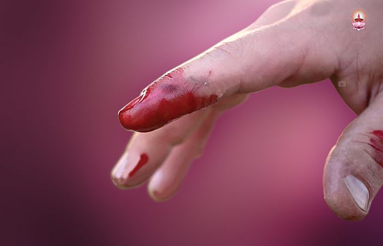 അവിടെ നിന്ന് അപ്പോഴും കിനിയുന്ന രക്തത്തുള്ളികള് അവന്റെ ചുണ്ടുവിരലിന്റെ അഗ്രത്തില് പതിഞ്ഞു.