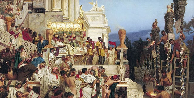 ക്രൈസ്തവപീഡനങ്ങള് സംഘടിതമായി ആരംഭിച്ചത് നീറോ ചക്രവര്ത്തിയുടെ ഭരണകാലത്തായിരുന്നു. ക്രിസ്തുവര്ഷം 54 മുതല് 68വരെയായിരുന്നു നീറോയുടെ ഭരണകാലം. നീറോ ക്ലാവുഡിയൂസ് സീസര് അഗസ്റ്റസ് ജര്മാനികൂസ് എന്നായിരുന്നു അദ്ദേഹത്തിന്റെ പൂര്ണ്ണനാമം. അദ്ദേഹത്തിന്റെ ഭരണത്തിന്റെ പത്താം വര്ഷം അതായത് 64-ാം മാണ്ട് ജൂലൈ മാസം റോമില് വലിയ അഗ്നിബാധയുണ്ടായി. ആറു പകലും ഏഴു രാത്രിയും തീ കത്തിക്കൊണ്ടേയിരുന്നു. അഗ്നി നഗരത്തിന്റെ എല്ലാ ഭാഗങ്ങളിലേയ്ക്കും പടര്ന്നു. അനേകം കെട്ടിടങ്ങള് കത്തിയമര്ന്നു. പ്രത്തോറിയത്തിന്റെ കാവല്ക്കാരായ ടിജെല്ലിനൂസിന്റെ തോട്ടവും കത്തി. അഗ്നി ശമിച്ചപ്പോഴേയ്ക്കും റോമിന്റെ മൂന്നില് രണ്ട് ഭാഗവും ചാമ്പലായി. മൂന്നാം ദിവസം നീറോ അഗ്നി കാണാനെത്തി. അദ്ദേഹം നാടകീയ വസ്ത്രങ്ങള് ധരിച്ച് വന്നു കണ്ടു. കാടത്തമായ സന്തോഷം അനുഭവിച്ചു. അദ്ദേഹം തന്നെയാണ് തീ കൊളുത്താന് നിര്ദ്ദേശം കെടുത്തതെന്ന സംസാരമുണ്ടായി. പന്തങ്ങള് കത്തിച്ചെറിഞ്ഞത് അദ്ദേഹത്തിന്റെ നിര്ദ്ദേശപ്രകാരമായിരുന്നുവെന്ന് പറയപ്പെടുന്നു. ആരോപണം ശക്തമായപ്പോള് തനിക്ക് രക്ഷപ്പെടാന് വേണ്ടി അതിന്റെ ഉത്തരവാദിത്വം ക്രിസ്ത്യാനികളുടെ മേല് കെട്ടിവച്ചു. ക്രിസ്ത്യാനികളാണ് റോമാ നഗരം കത്തിച്ചത്! ചരിത്രകാരനായ ടാസിറ്റസ് പറയുന്നു. ക്രിസ്ത്യാനികളാണിത് ചെയ്തതെന്ന നീറോയുടെ കെട്ടുകഥ ആരും വിശ്വസിച്ചില്ല. എന്നാല് നീറോ അവരെ ഇല്ലാതാക്കാന് ശ്രമിച്ചു. പെട്രോളും മെഴുകും മറ്റു പദാര്ത്ഥങ്ങളും ടാറും ചേര്ത്ത് പൊതിഞ്ഞ് പന്തങ്ങളായി തൂണില് ഉയര്ത്തി നിര്ത്തി കത്തിച്ചു. ചിലരെ കാട്ടുമൃഗങ്ങളുടെ തോലു ധരിപ്പിച്ച് വിശക്കുന്ന വേട്ടനായ്ക്കള്ക്ക് എറിഞ്ഞു കൊടുത്തു. അവ അവരെ കടിച്ചുകീറി കഷണങ്ങളാക്കി തിന്നു. ചിലരെ കുരിശില് തറച്ചു. ഇവയൊക്കെ നീറോ തന്റെ പൂന്തോട്ടത്തില് പൊതു ആഹ്ലാദത്തോടും സംഗീതത്തോടും കൂടെ ആഘോഷിച്ചു. ഇവയെല്ലാം വിനോദങ്ങളും ഷോകളുമായി നടത്തപ്പെടുകയായിരുന്നു. ആ സമയത്ത് തന്നെ കുതിരസവാരിയും നടത്തി ദൃശ്യങ്ങള് ആസ്വദിച്ചു. ഗ്ലാഡിയേറ്ററുകളുമായി മല്ലയുദ്ധത്തിനും ആംഫി തിയ്യേറ്ററുകളില് ക്രൂരമൃഗങ്ങള്ക്കും ക്രൈസ്തവര് എറിയപ്പെട്ടു.