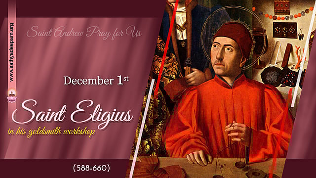 ഫ്രാന്സില് ലിമോഗെ നഗരത്തിലാണ് റോമന് മാതാപിതാക്കളുടെ മകനായി എലീജിയസ് ജനിച്ചത്. സമര്ത്ഥനായ സ്വര്ണ്ണപ്പണിക്കാരനും ഇരുമ്പുപണിക്കാരനുമായിരുന്നു അയാള്. രാജാവായ ക്ലോട്ടെയര് രണ്ടാമനുവേണ്ടി സ്വര്ണ്ണവും വിലപിടിപ്പുള്ള കല്ലുകളും ഉപയോഗിച്ച് മനോഹരമായ ഒരു സിംഹാസനം ഉണ്ടാക്കി. കളങ്കമില്ലാത്ത ജീവിതവും സത്യസന്ധതയും കണ്ട് അവനെ മര്സെയില്സിലെ നാണയശാലയിലെ മാസ്റ്ററാക്കി. അവിടെയായിരിക്കുമ്പോഴും പാവപ്പെട്ട തടവുകാരെ സഹായിക്കാന് അയാള് സംഭാവനകള് സംഭരിച്ചുകൊണ്ടിരുന്നു. ജയില് മോചിതരായ സാക്സണ്സ്, ബ്രട്ടന്സ്, മൂര്സ് എന്നിവര് ധാരാളമായി ആ തുറമുഖത്തു വന്നുകൊണ്ടിരുന്നു. അത്മായനായിരുന്ന അദ്ദേഹം സന്ന്യാസികള്ക്കായുള്ള ഐറിഷ് നിയമം, വി. കൊളുമ്പന് ഹോളില് പ്രാവര്ത്തികമാക്കിയത്, നടപ്പിലാക്കിക്കൊണ്ട് കൊട്ടാരത്തിനുള്ളിലെ ജീവിതം സംസ്കാരസമ്പന്നമാക്കി.
