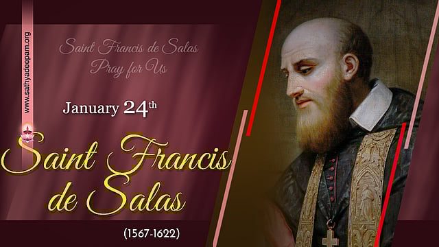 എഴുത്തുകാരുടെ സ്വര്ഗ്ഗീയ മദ്ധ്യസ്ഥനായാണ് വി. ഫ്രാന്സിസ് സാലസ് അറിയപ്പെടുന്നത്. ഫ്രാന്സില്, ഒരു യാഥാസ്ഥിതിക സമ്പന്ന കുടുംബത്തില് 1567 ആഗസ്റ്റ് 21-ന് ജനിച്ചു. 13 മക്കളില് മൂത്തവനായിരുന്നു ഫ്രാന്സീസ്. 25-ാമത്തെ വയസില് പാദുവായില്നിന്ന് നിയമത്തില് ഡോക്ടര് ബിരുദം നേടി. അടുത്തവര്ഷം, സെനറ്ററാകാനുള്ള അവസരം വേണ്ടെന്നുവച്ച്, പിതാവിന്റെ ശക്തമായ എതിര്പ്പു വകവയ്ക്കാതെ, പൗരോഹിത്യം സ്വീകരിക്കാന് തീരുമാനിച്ചു.അന്നു ജനീവായിലും മറ്റും പ്രൊട്ടസ്റ്റന്റു സ്വാധീനത്തില് പ്രചരിച്ചിരുന്ന തെറ്റായ ആശയങ്ങള്ക്കെതിരെ ഫ്രാന്സീസ് ശക്തമായി പ്രതികരിച്ചു. സഭയുടെ നിയമങ്ങള്, സംവാദങ്ങള് എന്ന തലക്കെട്ടില് ക്രോഡീകരിച്ച് ലഘുലേഖകളാക്കി പ്രചരിപ്പിച്ചുകൊണ്ടിരുന്നു.