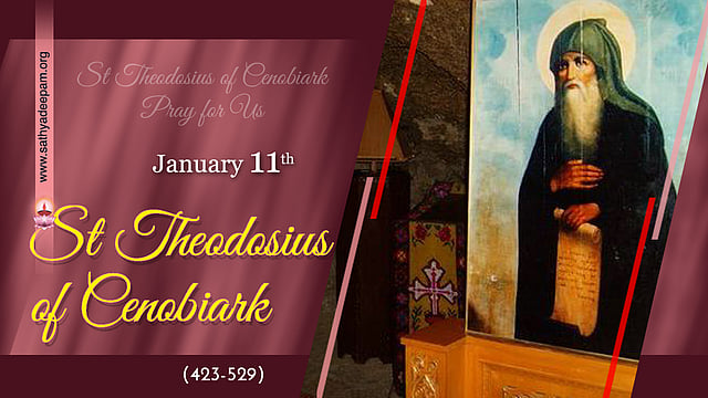 ടര്ക്കിയാണ് തെയഡോഷ്യസിന്റെ ജന്മസ്ഥലം. സ്തൂപസ്ഥനായ വി. സൈമണിന്റെ വ്യത്യസ്തമായ ജീവിതശൈലിയില് ആകൃഷ്ടനായ തെയഡോഷ്യസ് 30 വര്ഷം ഒരു ഗുഹയില് പ്രാര്ത്ഥനയും ഉപവാസവുമായി കഴിഞ്ഞു. അദ്ദേഹത്തിന്റെ വിശിഷ്ടമായ ജീവിതത്താല് ആകൃഷ്ടരായി അനേകംപേര് അദ്ദേഹത്തിന്റെ ശിഷ്യത്വം സ്വീകരിക്കാന് വന്നു. അങ്ങനെ, ചാവുകടലിനടുത്ത് യൂദയായിലെ മരുഭൂമിയില് ഒരു വലിയ ആശ്രമം പടുത്തുയര്ത്തേണ്ടിവന്നു. വി. ബേസിലിന്റെ നിയമാവലികള്ക്കനുസൃതമായി ആദ്യം രൂപംകൊടുത്ത ആശ്രമമായിരുന്നു അത്.
