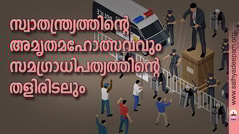സ്വാതന്ത്ര്യത്തിന്റെ 74 വര്ഷങ്ങള് ഒരു ധൂമകേതു എന്ന പോലെ കടന്നുപോയിരിക്കുന്നു. എല്ലാ കടന്നുപോകലുകളും നിസ്സഹായരായി നില്ക്കുന്ന ചില കാഴ്ചക്കാരെ സൃഷ്ടിക്കാറുണ്ട്. അതുപോലെ സ്വാതന്ത്ര്യത്തിന്റെ സ്മരണയും ചില നിസ്സഹായരെ അവശേഷിപ്പിക്കുന്നുണ്ട്. അതിന്റെ തെളിവാണ് നിസ്സംഗമായ ഒരു നിശബ്ദത മുമ്പില്ലാത്തതുപോലെ രാജ്യത്താകമാനം പടര്ന്നിരിക്കുന്നത്. ഹിമാലയത്തിനോളം മഹിമയുണ്ടായിരുന്ന ഭാരതത്തിന്റെ ഭരണഘടനാധിഷ്ഠിതമായ ജനാധിപത്യം ഊര്ദ്ധ്വശ്വാസം വലിക്കുന്നു. തെരഞ്ഞെടുക്കപ്പെട്ട സര്ക്കാരുകളെ പിന്നില് നിന്നും കുത്തി വീഴ്ത്തുന്ന 'ഓപ്പറേഷന് താമരകള്' നിത്യസംഭവമാകുന്നു.