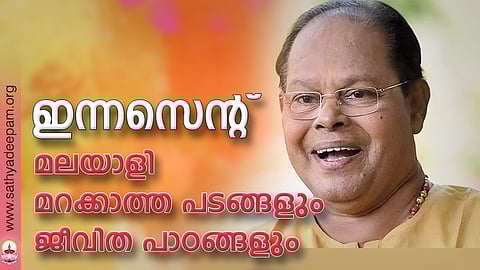 ഏഴര പതിറ്റാണ്ടു ജീവിച്ച്, എഴുനൂറോളം സിനിമകളില് അഭിനയിച്ചു കടന്നുപോകുമ്പോള്, ഇന്നസെന്റ് അവശേഷിപ്പിക്കുന്നത് ഒരു ഹാസ്യതാരത്തിന്റെ മാത്രം ചരിത്രമല്ല. അറുപത്തഞ്ചാം വയസ്സില് കാന്സര് രോഗം ബാധിച്ച ഇന്നസെന്റ് രോഗാവസ്ഥകളെ എ പ്രകാരം അഭിമുഖീകരിക്കണമെന്ന കാര്യത്തില് മലയാളിക്കു മാതൃകയായി. കാന്സര് ചികിത്സയ്ക്കു ശേഷം തിരഞ്ഞെടുപ്പില് മത്സരിച്ചു ജയിച്ച് ഇന്ത്യന് പാര്ലമെന്റംഗമായി. നടീനടന്മാരുടെ സംഘടനയെ ദീര്ഘകാലം നയിച്ചു. ഇരിങ്ങാലക്കുടയില് ജനിച്ച്, എട്ടാം ക്ലാസു വരെ മാത്രം പഠിച്ച ഒരു മനുഷ്യനു ചെയ്യാന് കഴിയുന്നതിന്റെ പരമാവധി ചെയ്ത ശേ ഷമാണ് ജീവിതത്തോട് അദ്ദേഹം വിട പറഞ്ഞത്. ലക്ഷ്യബോധവും കഠിനാദ്ധ്വാനസന്നദ്ധതയും ആ ത്മവിശ്വാസവുമുണ്ടെങ്കില് വിജയം ആര്ക്കും സാദ്ധ്യമാണെന്ന് അദ്ദേഹത്തിന്റെ ജീവിതം സാക്ഷ്യം പറയുന്നു.
