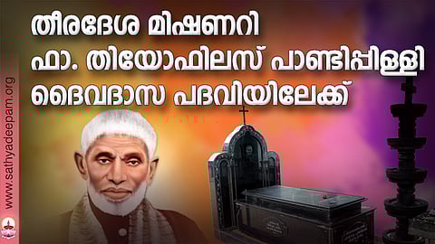 കോട്ടപ്പുറം രൂപതയും തീരദേശ ജനതയും നിറഞ്ഞ ആഹ്ലാദത്തിലും തികഞ്ഞ അഭിമാനത്തിലുമാണ്. കാരണം കോട്ടപ്പുറം രൂപതാംഗമായ തീരദേശത്തിന്റെ അപ്പസ്തോലന് ഫാ. തിയോഫിലസ് പാണ്ടിപ്പിള്ളി അദ്ദേഹത്തിന്റെ 75-ാം ചരമവാര്ഷിക ദിനമായ ഡിസംബര് 26 വൈകീട്ട് 3 ന് ദൈവദാസ പദവിയിലേക്ക് ഉയര്ത്തപ്പെട്ടു. പാണ്ടിപ്പിള്ളിയച്ചന്റെ കബറിടം സ്ഥിതി ചെയ്യുന്ന കോട്ടപ്പുറം രൂപതയിലെ മടപ്ലാതുരുത്ത് സെ. ജോര്ജ് പള്ളിയില് നടന്ന സമൂഹ ദിവ്യബലി മധ്യേയായിരുന്നു ദൈവദാസ പദവി പ്രഖ്യാപനം.