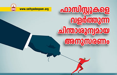 പ്രതിക്കൂട്ടില് കുറ്റബോധമില്ലാതെ നില്ക്കുന്ന ഐക്മാനൊരു "Monster" – ഭീകര സത്വമാണെന്ന് പറഞ്ഞവരോട് വിയോജിച്ചുകൊണ്ട് ആരെന്റ് പറഞ്ഞു: He is a clown – അയാളൊരു കോമാളിയാണ്. എങ്ങനെയാണയാള് ഹിറ്റ്ലറുടെ കോമാളിയായത്? ചിന്താശൂന്യതയാണ് ഐക്മാനെ കോമാളിവേഷം കെട്ടിച്ചതും അതുവഴി തുമ്പികളെക്കൊണ്ടു കല്ലെടുപ്പിക്കുന്ന കുട്ടികളുടെ മാനസിക നിലവാരത്തിലേക്കു താഴ്ത്തിയതും. ഈ ചിന്താശൂന്യതയാണ് കോഴിയെ കൊല്ലുന്നപോലെ ലക്ഷണക്കണക്കിന് മനുഷ്യരെ ഗളച്ഛേദം ചെയ്തും ശ്വാസംമുട്ടിച്ചും കൊല്ലാന് നാസി പാര്ട്ടി അനുഭാവികളെ പ്രേരിപ്പിച്ചത്. ഈ ചിന്താശൂന്യതയാണ് ഹാസ്യതാരത്തെ മരത്തില് കെട്ടിത്തൂക്കിക്കൊല്ലാന് അഫ്ഗാനിലെ താലിബാന്കാരെ പ്രേരിപ്പിച്ചത്. ചിന്താശൂന്യതയില് നിന്നു ജനിക്കുന്ന അസഹിഷ്ണുത തന്നെയാണ് ഒരുവന്റെ ഭക്ഷണശീലങ്ങളെപ്പോലും ത്രിശൂലത്തില് കോര്ക്കാന് ഭാരത ഫാസിസ്റ്റുകളെ പ്രേരിപ്പിക്കുന്നത്. ഇതേ ചിന്താശൂന്യത തന്നെയാണ് വ്യത്യസ്ത സ്വരങ്ങളെ വിമതരെന്നു പറഞ്ഞ് വെട്ടിയൊരുക്കാന് ചില സ്വയം പ്രഖ്യാപിത "സഭാസ്നേഹികളെ" പ്രേരിപ്പിക്കുന്നത്. ഈ ചിന്താശൂന്യരെയാണ് ആദരണീയരാകേണ്ട ചില അഭിവന്ദ്യര് തങ്ങളുടെ കുഴലൂത്തുകാരായി ഉപയോഗിക്കുന്നത്. ഹിറ്റ്ലര് ഉപയോഗിച്ചപോലെ!