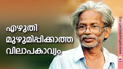 ''ഒരോ ശിശുരോദനത്തിലും കേള്പ്പു നാം ഒരു കോടി ഈശ്വരവിലാപം'' എന്നു മധുസൂദനന് നായര് നമ്മെ ഓര്മ്മപ്പെടുത്തിയിട്ടുണ്ട്. ഇവിടെ അയ്യപ്പന്റെ ഓരോ കവിതയും ഓരോ വിലാപമായി വന്ന് നമ്മെ പൊതിയുന്നു. ആ നിലവിളിയില് വീടും നാടും ഇല്ലാത്തവന്റെ പ്രണയനഷ്ടങ്ങളുടെ, ബന്ധങ്ങള് അറ്റുപോയതിന്റെ, സര്വരാലും വെറുക്കപ്പെട്ടവനായതിന്റെയൊക്കെ സങ്കടം കേള്ക്കാം. അതുമല്ലെങ്കില് ''അച്ഛന്റെ ബലിഷ്ഠതയും അമ്മയുടെ ആശ്ശിസുകളും എപ്പോഴും കരയുന്ന പെങ്ങളുമായ മണ്ണ്'' അറിയാതറിയാതെ കാല്ച്ചുവട്ടില്നിന്നും ഒലിച്ചുപോയതിലുള്ള തീവ്രവ്യഥയും വിഹ്വലതകളും കേള്ക്കാം. പക്ഷേ, അയ്യപ്പനതില് പരിഭവമില്ല; പരാതിയുമില്ല ആരോടും. തന്റെ ധര്മ്മം കവിതയെഴുത്ത് മാത്രം എന്ന ഉത്തമബോധ്യത്തോടെ സ്വാപീഢാക്രീഢകളില് മുഴുകി മൂര്ച്ഛയുള്ള വാക്കുകളെ ചോരക്കട്ടകളാക്കി പൊള്ളുന്ന ജീവിത യാഥാര്ത്ഥ്യങ്ങളിലേക്ക് എറിഞ്ഞു കൊണ്ടേയിരുന്നു...