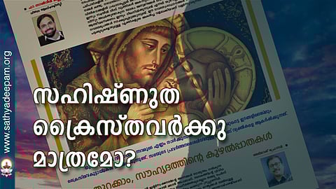 സത്യദീപം 12-ാം ലക്കത്തിലെ ഫാ. സാല്വിന് കണ്ണമ്പള്ളിയുടെ അഭിലാഷ് ഫ്രേസറിന്റെയും ലേഖനം നന്നായിരുന്നു. ക്രൈസ്തവ പ്രസിദ്ധീകരണങ്ങളും എഴുത്തുകാരും എപ്പോഴും സഹിഷ്ണുത, സ്നേഹം, പെരുമാറ്റ ഗുണം എന്നിവയെക്കുറിച്ച് എഴുതും.