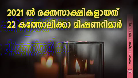 2021 ല് ആകെ 22 കത്തോലിക്കാ മിഷണറിമാര് ലോകത്തിന്റെ വിവിധ ഭാഗങ്ങളില് കൊല്ലപ്പെട്ടതായി വത്തിക്കാന് അറിയിച്ചു. ഇവരില് 13 പേര് പുരോഹിതന്മാരും രണ്ടു പേര് കന്യാസ്ത്രീകളും ഒരാള് പുരുഷ സന്യാസിയുമായിരുന്നു. ആറ് അത്മായരും സഭാസേവനത്തിനിടെ കൊല്ലപ്പെട്ടു. പകുതി പേരും രക്തം ചിന്തി ജീവന് വെടിഞ്ഞത് ആഫ്രിക്കയിലാണ് - ഏഴു വൈദികരും രണ്ടു കന്യാസ്ത്രീകളും രണ്ട് അത്മായരും. ഏഴു പേര് ലാറ്റിനമേരിക്കയിലും മൂന്നു പേര് ഏഷ്യയിലും ഒരാള് യൂറോപ്പിലും വധിക്കപ്പെട്ടു. 2000 മുതലുള്ള ഇരുപതു വര്ഷത്തിനിടെ ആകെ 536 കത്തോലിക്കാ മിഷണറിമാരാണ് ലോകത്തിന്റെ വിവിധ ഭാഗങ്ങളിലായി കൊല്ലപ്പെട്ടത്.