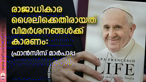 പാപ്പാസ്ഥാനം ഏറ്റെടുത്തതിന്റെ പതിനൊന്നാം വാര്ഷികത്തില് പുറത്തിറങ്ങിയ ആത്മകഥയിലാണ് താന് നേരിട്ട വിമര്ശനങ്ങളെ മാര്പാപ്പ വിലയിരുത്തുന്നത്. 'ജീവിതം: എന്റെ കഥ ചരിത്രത്തിലൂടെ' എന്ന ആത്മകഥ ഒരു ഇറ്റാലിയന് ദിനപ്പത്രം ആണ് പ്രസിദ്ധീകരിച്ചത്. പത്രോസിന്റെ ശുശ്രൂഷ ആയുഷ്കാലത്തേക്കുള്ളതാണെന്നും രാജിവയ്ക്കാനുള്ള സാഹചര്യങ്ങള് ഒന്നും ഇപ്പോഴില്ലെന്നും മാര്പാപ്പ വ്യക്തമാക്കി. ആരോഗ്യം തൃപ്തികരമാണെന്നും ദൈവം അനുവദിച്ചാല് കൂടുതല് പദ്ധതികള് സാക്ഷാത്കരിക്കാന് ഉണ്ടെന്നും അദ്ദേഹം പറഞ്ഞു.