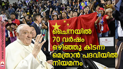 ചൈനയിലെ ഷെങ്ഷൗ രൂപതാദ്ധ്യക്ഷനായി ഫാ. തദേവൂസ് യുഷെങ്ങിനെ ഫ്രാന്സിസ് മാര്പാപ്പ നിയമിച്ചു. 70 വര്ഷമായി ഒഴിഞ്ഞു കിടക്കുകയായിരുന്നു ഈ രൂപതയുടെ അധ്യക്ഷ പദവി. വത്തിക്കാനും ചൈനാ ഭരണകൂടവും തമ്മില് രൂപപ്പെടുത്തിയിരിക്കുന്ന താല്ക്കാലിക ധാരണയിലെ വ്യവസ്ഥകള്ക്ക് അനുസരിച്ചാണ് ഈ മെത്രാന്റെ നിയമനം. 58 കാരനായ പുതിയ മെത്രാന് ചൈനീസ് ഭരണകൂടത്തിനും സ്വീകാര്യനാണ്. ജനുവരി അവസാനവാരം നടന്ന മെത്രാഭിഷേക കര്മ്മത്തില് 300 ലേറെ വൈദികരും മറ്റു ജനങ്ങളും പങ്കെടുത്തു എന്നാണ് വാര്ത്ത.