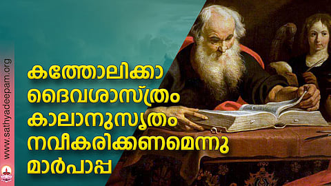 കാലാനുസൃതവും സാഹചര്യാനുസൃതവുമായ വിധത്തില് കത്തോലിക്കാസഭയുടെ ദൈവശാസ്ത്രത്തില് ഒരു വീക്ഷണമാറ്റം വരുത്തേണ്ടതുണ്ടെന്നു ഫ്രാന്സിസ് മാര്പാപ്പ ആവശ്യപ്പെട്ടു. ദൈവശാസ്ത്രത്തിനു വേണ്ടിയുള്ള പൊന്തിഫിക്കല് അക്കാദമിയുടെ നിയമാവലിയില് ഇതനുസരിച്ചുള്ള പരിഷ്കരണങ്ങളും മാര്പാപ്പ നിര്ദേശിക്കുന്നു. കത്തോലിക്കാ ദൈവശാസ്ത്രത്തിന്റെ ഭാവിയെ നിര്ണായകമായ വിധത്തില് സ്വാധീനിക്കാന് പര്യാപ്തമായ പുതിയ രേഖ 'ദൈവശാസ്ത്രപ്രോത്സാഹനത്തിന്' എന്ന പേരില് മാര്പാപ്പ പുറപ്പെടുവിച്ചു.