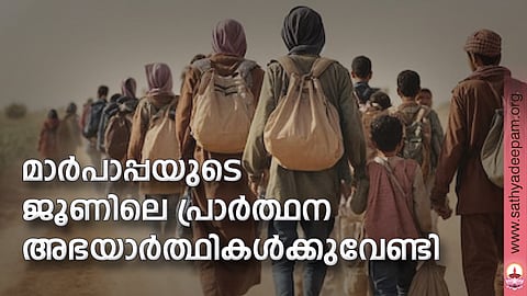 സ്വന്തം ജന്മനാടുകള് വിട്ട് പലായനം ചെയ്യേണ്ടിവരുന്ന ആളുകള്ക്കുവേണ്ടിയാണ് ജൂണ് മാസത്തില് പ്രത്യേകമായി പ്രാര്ത്ഥിക്കുക എന്ന് ഫ്രാന്സിസ് മാര്പാപ്പ അറിയിച്ചു. ''യുദ്ധം മൂലവും ദാരിദ്ര്യം മൂലവും ജന്മനാടുകള് വിട്ട് പലായനം ചെയ്യാന് നിര്ബന്ധിതരാകുന്ന ആളുകള് വേരുകള് ഇല്ലാതാകുന്നതിന്റെ ദുഃഖം അനുഭവിക്കുന്നു. എവിടമാണ് തങ്ങള്ക്കു സ്വന്തമായുള്ളതെന്ന് അവര്ക്ക് അറിയില്ല. അവര് ചെന്നെത്തുന്ന ചില രാജ്യങ്ങളിലാകട്ടെ കുടിയേറ്റക്കാരെ ഭീഷണിയായി കരുതുകയും പേടിക്കുകയും ചെയ്യുന്നു. കുടുംബങ്ങളെയും ഹൃദയങ്ങളെയും വേര്തിരിക്കുന്ന മതിലുകള് ഉയര്ത്തപ്പെടുന്നു. ഈയൊരു കാഴ്ചപ്പാട് ക്രൈസ്തവര്ക്ക് പുലര്ത്താനാകില്ല. കുടിയേറ്റക്കാരെ സ്വാഗതം ചെയ്യുന്നവന് ക്രിസ്തുവിനെ തന്നെയാണ് സ്വാഗതം ചെയ്യുന്നത്,'' പ്രാര്ത്ഥനായോഗം അറിയിച്ചുകൊണ്ടുള്ള വീഡിയോ സന്ദേശത്തില് മാര്പാപ്പ വിശദീകരിച്ചു.