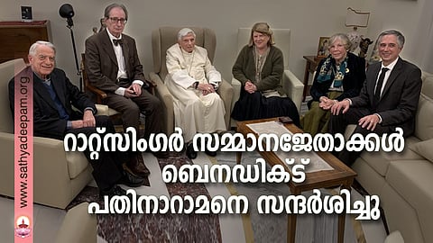 റാറ്റ്സിംഗര് സമ്മാനത്തിന് ഏറ്റവും ഒടുവില് അര്ഹരായ നാലു പേര് ചേര്ന്ന് വിരമിച്ച പാപ്പാ ബെനഡിക്ട് പതിനാറാമനെ സന്ദര്ശിച്ചു സംഭാഷണം നടത്തി. ബെനഡിക്ട് പതിനാറാമന്റെ ദൈവശാസ്ത്രചിന്തകളുടെ വെളിച്ചത്തില് ദൈവശാസ്ത്രത്തിന് അര്ത്ഥവത്തായ സംഭാവനകള് നല്കുന്നവര്ക്കായി റാറ്റ്സിംഗര്-ബെനഡിക്ട് പതിനാറാമന് ഫൗണ്ടേഷന് വര്ഷം തോറും നല്കുന്ന അംഗീകാരമാണ് റാറ്റ്സിംഗര് പ്രൈസ്. ഫൗണ്ടേഷന് തിരഞ്ഞെടുക്കുന്നവര്ക്ക് മാര്പാപ്പയുടെ അംഗീകാരത്തോടെയാണു സമ്മാനം പ്രഖ്യാപിക്കുക. ഹന്നാ ബാര്ബര, ലുഡ്ഗര് ഷ്വീന്ഹോഴ്സ്റ്റ് എന്നിവര്ക്കായിരുന്നു 2021 ലെ സമ്മാനം. 2020 ലെ സമ്മാനജേതാക്കള്ക്കും കോവിഡ് മൂലം ഇവര്ക്കൊപ്പമാണ് സമ്മാനം വിതരണം ചെയ്തത്.