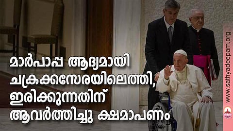 സന്യാസസമൂഹങ്ങളുടെ സുപീരിയര് ജനറല്മാരെ കാണാന് പോള് ആറാമന് ഹാളിലേയ്ക്കു ചക്രക്കസേരയിലെത്തിയ ഫ്രാന്സിസ് മാര്പാപ്പയെ സംബന്ധിച്ച് അത് ആദ്യത്തെ അനുഭവമായിരുന്നു. പൊതുവേദികളിലേയ്ക്ക് ഇതുവരെ നടന്നു മാത്രമാണ് അദ്ദേഹം എത്തിയിട്ടുള്ളത്. ഇതിനു മുമ്പ് ഉദര ശസ്ത്രക്രിയക്കു വിധേയനായ ശേഷം വീല് ചെയറിലെത്തിയാണ് അദ്ദേഹം ആശുപത്രി ജീവനക്കാര്ക്കും ജനങ്ങള്ക്കും ആശംസകള് നേര്ന്നത്.