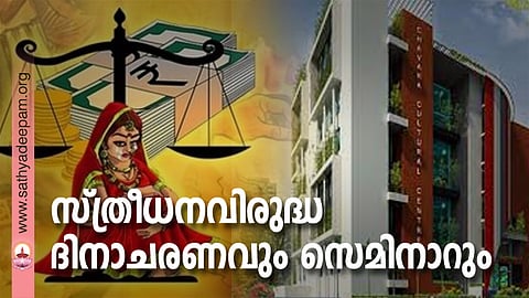 കേരള സര്ക്കാര് പ്രഖ്യാപിച്ച നവംബര് 26 നു സ്ത്രീധനവിരുദ്ധദിനമായി ആചരിക്കുന്നതിന്റെ ഭാഗമായി ചാവറ കള്ച്ചറല് സെന്റര്, ചാവറ ഫാമിലി വെല്ഫെയര് സെന്റര് സംയുക്തമായി നവംബര് 25 വെകീട്ട് 4 മണിക്ക് സ്ത്രീധനവിരുദ്ധദിനാചരണവും സെമിനാറും സംഘടിപ്പിക്കുന്നു. ആദരണീയനായ മനുഷ്യാവകാശകമ്മീഷന് മുന് ആക്ടിങ് ചെയര്മാന് ശ്രീ. പി. മോഹനദാസ് സെമിനാര് ഉദ്ഘാടനം ചെയ്യും. മുന് കൊച്ചിമേയര് ശ്രീമതി. സൗമിനി ജെയിന് സന്ദേശം നല്കുന്ന സെമിനാറില് അഡ്വ. റീന എബ്രഹാം മുഖ്യപ്രഭാഷണം നടത്തും. ഫാ. തോമസ് പുതുശ്ശേരി സി.എം.ഐ. അധ്യക്ഷത വഹിക്കുന്ന സെമിനാറില് ഫാ. അനില് ഫിലിപ്പ്, ജോണ്സണ് സി. എബ്രഹാം എന്നിവര് പ്രസംഗിക്കും.