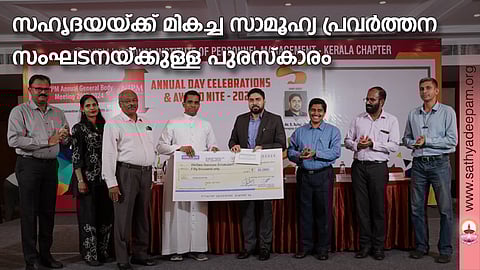 കൊച്ചി : നാഷണല് ഇന്സ്റ്റിറ്റ്യൂട്ട് ഓഫ് പേഴ്സണല് മാനേജ്മെന്റ് കേരള ചാപ്റ്റര് മികച്ച സാമൂഹ്യ പ്രവര്ത്തന സംഘടനയ്ക്കായി ഏര്പ്പെടുത്തിയ പുരസ്കാരം എറണാകുളം അങ്കമാലി അതിരൂപതാ സാമൂഹ്യ പ്രവര്ത്തന വിഭാഗമായ സഹൃദയയ്ക്ക് ലഭിച്ചു. ആറു പതിറ്റാണ്ടുകാലത്തെ സാമൂഹ്യ, പാരിസ്ഥിതിക രംഗത്തെ പ്രവര്ത്തനങ്ങള് മാനിച്ചാണ് പുരസ്കാരം. കലൂര് ഗോകുലം കണ്വെന്ഷന് സെന്ററില് സംഘടിപ്പിച്ച എന്.ഐ.പി.എം. കേരള ചാപ്റ്റര് വാര്ഷിക സമ്മേളനത്തില് കൊച്ചി ഇന്റര്നാഷണല് എയര്പോര്ട്ട് ലിമിറ്റഡ് മാനേജിംഗ് ഡയറക്ടര് എസ്. സുഹാസ് ഐ.എ.എസ് സഹൃദയ ഡയറക്ടര് ഫാ. ജോസ് കൊളുത്തുവെള്ളിലിന് അമ്പതിനായിരം രൂപയും സാക്ഷ്യപത്രവുമടങ്ങിയ പുരസ്കാരം കൈമാറി. എന്.ഐ.പി.എം. കേരള ചാപ്റ്റര് ചെയര്മാന് ജോണ്സണ് മാത്യു, സെക്രട്ടറി ക്ഷേമ സന്ദീപ്, സഹൃദയ ചീഫ് കണ്സള്ട്ടന്റ് തോമസ് കടവന് എന്നിവര് സന്നിഹിതരായിരുന്നു.