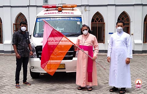 ഫോട്ടോ അടിക്കുറിപ്പ്: കോട്ടയം സോഷ്യല് സര്വ്വീസ് സൊസൈറ്റിയുടെ നേതൃത്വത്തില് മലങ്കര മേഖലയിലെ വിവിധ ഗ്രാമങ്ങളില് ലഭ്യമാക്കുന്ന കോവിഡ് പ്രതിരോധ കിറ്റുകളുടെ വിതരണത്തിന്റെ ഫ്ളാഗ് ഓഫ് കര്മ്മം കോട്ടയം അതിരൂപത സഹായമെത്രാന് ഗീവര്ഗ്ഗീസ് മാര് അപ്രേം നിര്വ്വഹിക്കുന്നു. വിഷ്ണുദാസ് റ്റി. ഡി, ഫാ. ഗ്രെയ്സണ് വേങ്ങയ്ക്കല് എന്നിവര് സമീപം.