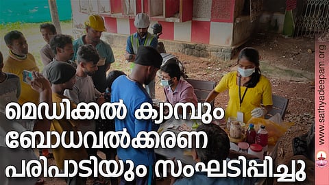കോട്ടയം: കോട്ടയം അതിരൂപതയുടെ സാമൂഹ്യ സേവന വിഭാഗമായ കോട്ടയം സോഷ്യല് സര്വ്വീസ് സൊസൈറ്റി കാരിത്താസ് ഇന്ഡ്യയുടെ സഹകരണത്തോടെ അതിഥി തൊഴിലാളികള്ക്കായി നടപ്പിലാക്കുന്ന കോവിഡാനന്തര ക്ഷേമ പ്രവര്ത്തനങ്ങളുടെ ഭാഗമായി മെഡിക്കല് ക്യാമ്പും ബോധവല്ക്കരണ പരിപാടിയും സംഘടിപ്പിച്ചു. കോട്ടയം മറിയപ്പള്ളി അക്ഷര മ്യൂസിയം കണ്സ്ട്രക്ഷന് സൈറ്റിലെ അതിഥി തൊഴിലാളികള്ക്കായാണ് ബോധവല്ക്കരണ പരിപാടിയും മെഡിക്കല് ക്യാമ്പും സംഘടിപ്പിച്ചത്. റിട്ട. ഡെപ്യൂട്ടി ലേബര് ഓഫീസര് ജോസഫ് ജോര്ജ്ജ് ക്യാമ്പിന്റെ ഉദ്ഘാടന കര്മ്മം നിര്വ്വഹിച്ചു. കോട്ടയം താലൂക്ക് അതിഥി തൊഴിലാളി ക്ഷേമ കോര്ഡിനേറ്റര് ജിതേഷ്, സൈറ്റ് സൂപ്പര്വൈസര് ടിജി തോമസ്, പ്രോജക്ട് ഓഫീസര് റെജിമോന് റ്റി. ചാക്കോ എന്നിവര് പരിപാടികള്ക്ക് നേതൃത്വം നല്കി. മെഡിക്കല് ക്യാമ്പിന് ഡോ. ഷിബിന് ഫെലിക്സ് നേതൃത്വം നല്കി. സൗജന്യ പരിശോധനയും മരുന്നുകളുടെ വിതരണവും ക്യാമ്പിനോടനുബന്ധിച്ച് നടത്തപ്പെട്ടു. നൂറോളം അതിഥി തൊഴിലാളികള് ക്യാമ്പില് പങ്കെടുത്തു