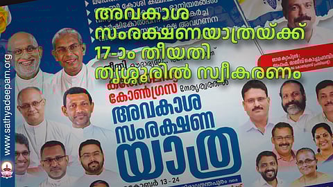 തൃശ്ശൂർ : കത്തോലിക്ക കോൺഗ്രസ്സ് ഗ്ലോബൽ സമിതി നടത്തുന്ന " നീതി ഔദാര്യമല്ല അവകാശമാണ് ' എന്ന ആപ്തവാക്യവുമായി കാസർഗോഡ് മുതൽ തിരുവനന്തപുരം വരെ നടത്തുന്ന യാത്ര ഒക്ടോബർ 17 ന് ഉച്ചക്ക് 2 മണിക്ക് തൃശ്ശൂർ അതിരൂപത അതിർത്തിയായ ചേലക്കരയിൽ എത്തിച്ചേരും.