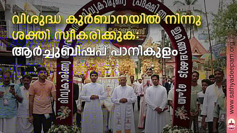 വിശുദ്ധ കുര്ബാനയില് നിന്നു ശക്തി സ്വീകരിച്ചു ക്രൈസ്തവജീവിതം ജീവകാരുണ്യമായി മുന്നോട്ടു കൊണ്ടുപോകണമെന്നു അപ്പസ്തോലിക് നുണ്ഷ്യോ ആയിരുന്ന ആര്ച്ചുബിഷപ് ജോര്ജ് പാനികുളം ആഹ്വാനം ചെയ്തു. ഇരിങ്ങാലക്കുട രൂപത ദിവ്യകാരുണ്യകോണ്ഗ്രസ് ഉദ്ഘാടനം ചെയ്തു പ്രസംഗിക്കുകയായിരുന്നു ആര്ച്ചുബിഷപ്. സെന്റ് തോമസ് കത്തീഡ്രല് അങ്കണത്തില് നടന്ന സമ്മേളനത്തില് ബിഷപ് പോളി കണ്ണൂക്കാടന് അധ്യക്ഷത വഹിച്ചു. കേരളസഭാനവീകരണത്തിന്റെയും രൂപത സുവര്ണ്ണ ജൂബിലി ആഘോഷത്തിന്റെയും മുന്നോടിയായിട്ടാണ് രൂപതയില് ദിവ്യകാരുണ്യകോണ്ഗ്രസ് സംഘടിപ്പിക്കപ്പെട്ടത്.
