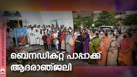 നിശബ്ദതയുടെ ക്രൈസ്തവ ആഴം ലോകത്തെ പഠിപ്പിച്ച, കാലം ചെയ്ത ബെനഡിക്റ്റ് പാപ്പാക്ക് തൃശൂര്, നെഹ്റുനഗര് സെന്റ് പീറ്റേഴ്സ് പള്ളി ആദരാഞ്ജലികള് അര്പ്പിച്ചു. സാംസണ് എലുവത്തിങ്കല് സന്ദേശം നല്കി. പ്രിന്സിപ്പല് ആശ ജോഫി അദ്ധ്യക്ഷത വഹിച്ചു . വികാരി ഫാ.ഡോ. ഫ്രാന്സീസ് ആലപ്പാട്ട് ദിവ്യബലി അര്പ്പിച്ചു.