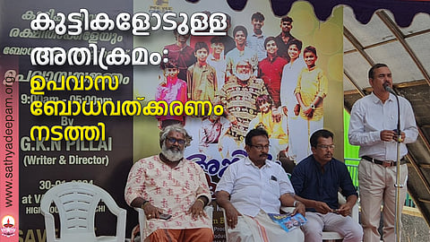 കൊച്ചി: കുട്ടികളോടുള്ള അതിക്രമങ്ങൾക്കെതിരെ ബോധവത്ക്കരണം ലക്ഷ്യമിടുന്ന "അങ്കിളും കുട്ടോളും" സിനിമയുടെ സംവിധായകനും തിരക്കഥാകൃത്തും നടനുമായ ജി കെ. എൻ പിള്ള എറണാകുളം വഞ്ചി സ്ക്വയറിൽ ഉപവാസ ബോധവത്ക്കരണം നടത്തി.