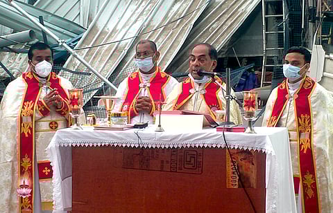 ആര്ച്ച്ബിഷപ്പ് കുര്യാക്കോസ് ഭരണികുളങ്ങര ഡല്ഹി അന്ധേരിയ മോഡിലെ നശിപ്പിക്കപ്പെട്ട ദേവാലയ പരിസരത്ത് വിശുദ്ധ ബലി അര്പ്പിക്കുകയും വിശ്വാസികളെ അഭിസംബോധന ചെയ്ത് സംസാരിക്കുകയും ചെയ്തു.