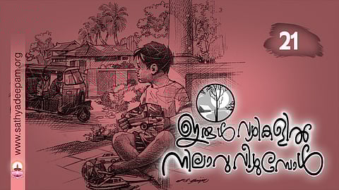 ഗേറ്റിനു സമീപം വന്നു നിന്ന ഒരു ഓട്ടോറിക്ഷയുടെ ശബ്ദമാണ് അവന്റെ ശ്രദ്ധ തിരിച്ചത്. അതില് നിന്നും പുറത്തേക്കിറങ്ങുന്ന ആളെക്കണ്ട് ആ കുഞ്ഞുമുഖം ആനന്ദാതിരേകത്താല് ഒരു പൂക്കുരവ പോലെ പൊട്ടിവിടര്ന്നു.