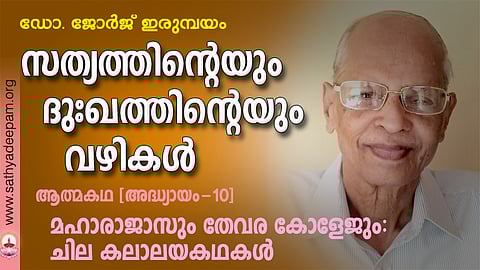 തേവരയിലെ ഒന്നുരണ്ടനുഭവങ്ങള്കൂടി: ബി.എ. മൂന്നാം വര്ഷം കൂടുതല് പഠനസൗകര്യം തേടി കോളജിനടുത്ത്, അധ്യാപകര് മുകള് നിലയില് താമസിക്കുന്ന ബോട്ട്ഹൗസിന്റെ താഴത്തെ നിലയിലെ ഒരു മുറിയില് ദേവസിയെന്ന ഒരു വിദ്യാര്ഥിയോടൊപ്പം ഞാന് താമസം തുടങ്ങി. (തലേ വര്ഷം ഹോസ്റ്റലിലായിരുന്നു). ആ മുറിയുടെ ഭിത്തിയില് ഒരു ബോര്ഡുണ്ടായിരുന്നു. രാമചരിതത്തിലെ ''വച്ചിറവല്ലെകിറന്'' പോലുള്ള വാക്കുകളും അര്ഥവും അതിലെഴുതിവച്ച് ഞാന് പഠിച്ചിരുന്നു. ടി.എം. ചുമ്മാരുസാര് അതിന്റെ മുകളിലാണു താമസിച്ചിരുന്നത്. കേരള യൂണിവേഴ്സിറ്റി സെനറ്റിലേക്കുള്ള മത്സരത്തില് അദ്ദേഹത്തിന്റെ വോട്ടു വാങ്ങാന്വന്ന കവി ആനന്ദക്കുട്ടനും പ്രൊഫ. കരിങ്കുളം നാരായണപിള്ളയും ഞങ്ങളുടെ മുറിയിലേക്കു വന്നു. ചുമ്മാരു സാര് മുകളില് ഇല്ലായിരുന്നു. അവര് ബോര്ഡിലെ എഴുത്തുകണ്ട് ആരാ രാമചരിതം പഠിക്കുന്നതെന്നു ചോദിച്ചു. ഞാന് ''കുറ്റം'' സമ്മതിച്ചു. അടുത്ത വര് ഷം എം.എക്ക് യൂണിവേഴ്സിറ്റി കോളജില് ചേര്ന്ന എന്റെ ക്ലാസ്സില് രാമചരിതം പഠിപ്പിക്കാന് വന്ന കരിങ്കുളം എന്റെ ഈ കുറ്റകൃത്യം വിളംബരം ചെയ്തത് അസൂയാലുക്കളായ ചില സഹപാഠികളെ അസ്വസ്ഥരാക്കി!
