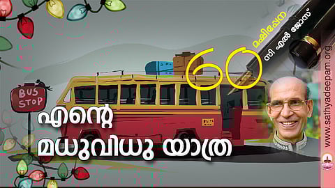 വേര്പിരിയുന്ന കാമുകീകാമുകന്മാരെപ്പോലെ, തിരിഞ്ഞുനോക്കി തിരിഞ്ഞുനോക്കി വിരഹദുഃഖത്തോടെ ഞങ്ങള് യാത്രയായി. ലിസി ആഘോഷപൂര്വം കോളേജ് ഹോസ്റ്റലിലേക്ക്. ഞാന് മ്ലാനമുഖനായി ബിഷപ് പാലസിലെ ഗസ്റ്റ് റൂമിലേക്ക്. മധുവിധു കലക്കി!