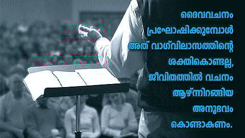 ദൈവവചനം പ്രഘോഷിക്കുമ്പോള് അത് വാഗ്വിലാസത്തിന്റെ ശക്തികൊണ്ടല്ല, ജീവിതത്തില് വചനം ആഴ്ന്നിറങ്ങിയ അനുഭവം കൊണ്ടാകണം. ജീവിതത്തെ വചനം ഗ്രസിച്ച അനുഭവത്തില്നിന്നാണ് വി. പൗലോസ് അത് പ്രഘോഷിക്കുന്നത്. നാം എങ്ങനെയാണെന്ന് ഓരോരുത്തരും വ്യക്തിപരമായി പരിശോധിക്കണമെന്ന് സാരം.