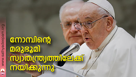 മരുഭൂമിയിലൂടെ ദൈവം നമ്മെ സ്വാതന്ത്ര്യത്തിലേക്ക് നയിക്കുന്നു. നോമ്പ് മരുഭൂമി പോലെയാണ്. നോമ്പുകാലം അടിമത്തത്തില് നിന്ന് ആത്മീയ നവീകരണത്തിലേക്ക്, സ്വാതന്ത്ര്യത്തിലേക്ക് ഉള്ള ഒരു പ്രയാണമാണ്. ദൈവം നമുക്ക് സ്വയം വെളിപ്പെടുത്തുമ്പോഴെല്ലാം അവിടുത്തെ സന്ദേശം സ്വാതന്ത്ര്യത്തിന്റേതാണ്. എന്നാല് ഇത് നമ്മുടെ പ്രയത്നം ആവശ്യപ്പെടുന്ന ഒരു പ്രക്രിയ കൂടിയാണ്. മരുഭൂമി പോലുള്ള ജീവിതത്തിലൂടെ നാം അലഞ്ഞു തിരിയുകയും വാഗ്ദത്ത ഭൂമി പോലെയുള്ള നമ്മുടെ ലക്ഷ്യസ്ഥാനം കാണാതിരിക്കുകയും ചെയ്യുന്നത് ദുഷ്കരമാണ്. ആ മരുഭൂമിയില് നമ്മുടെ സ്വാതന്ത്ര്യം പാകതയാര്ജിക്കുന്നു. നീതിക്കു നാം പുതിയ മാനദണ്ഡങ്ങള് കണ്ടെത്തുന്നു.
