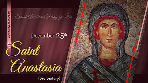 ഡയോക്ലീഷ്യന് ചക്രവര്ത്തിയുടെ കാലത്ത് ക്രിസ്മസ് ദിവസം രക്തസാക്ഷിത്വം വരിച്ച വിശ്വാസികളില് ഒരാളാണ് വി. അനസ്താസ്യ എന്നു വിശ്വസിക്കപ്പെടുന്നു. ദിവ്യബലിയുടെ റോമന് കാനനില് ഈ വിശുദ്ധയുടെയും നാമമുണ്ട്.